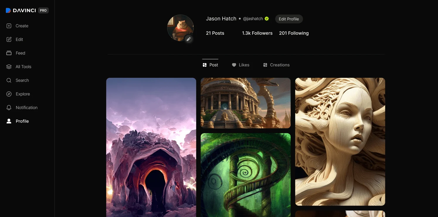 DaVinci AI is an all-in-one creative platform that turns your words and images into stunning AI-generated art, tattoos, avatars, logos, and more.