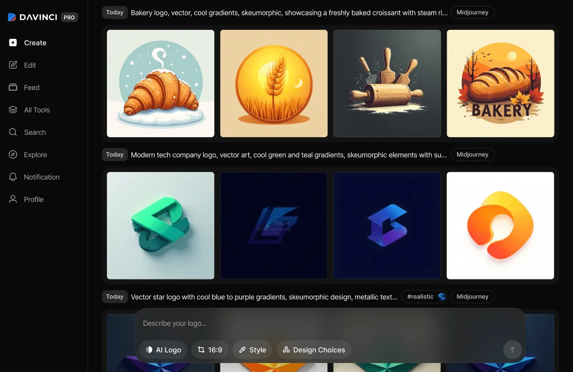 DaVinci Logo is an AI design tool that turns your ideas into professional, ready-to-use logos — no design skills needed.
