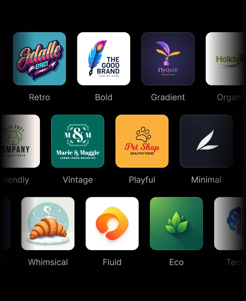 Explore real logo designs created with AI then design your own